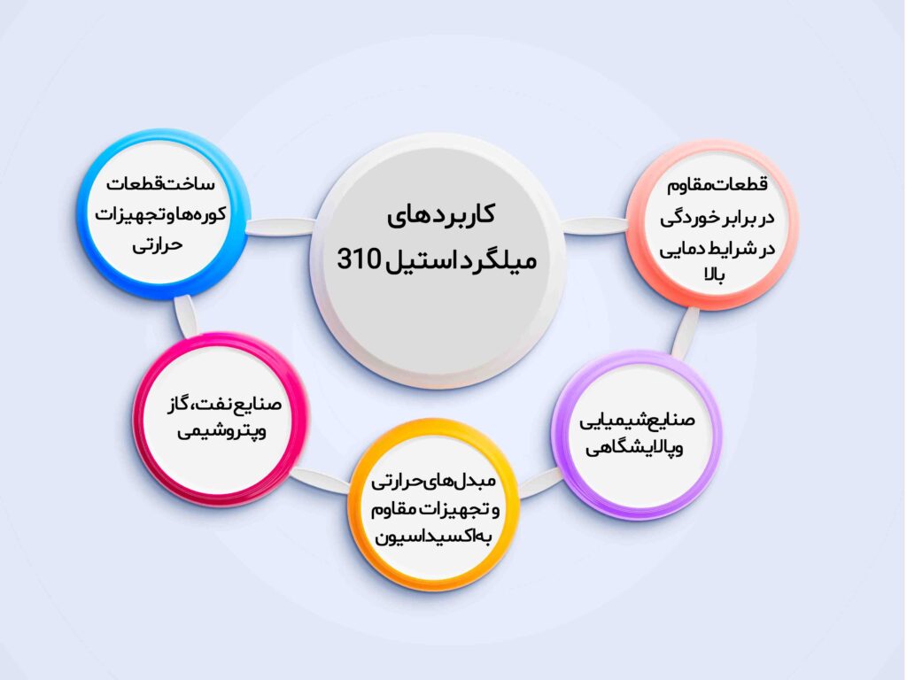 میلگرد 310 برای دماهای بالا طراحی شده، در حالی‌که 304 بیشتر برای مصارف عمومی و صنایع غذایی مناسب است.